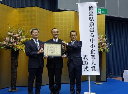 「徳島県頑張る中小企業大賞」は、経営革新計画の承認を受けて成果をあげた企業や特徴的な新たな取組を実施し、本県中小企業の模範となるような企業を顕彰することを目的に平成22年に度に創設された賞です。今回の受賞を励みに、より一層、意欲的な経営革新に取り組み、地域経済の活性化に貢献できる企業として頑張っていきたいと思います!